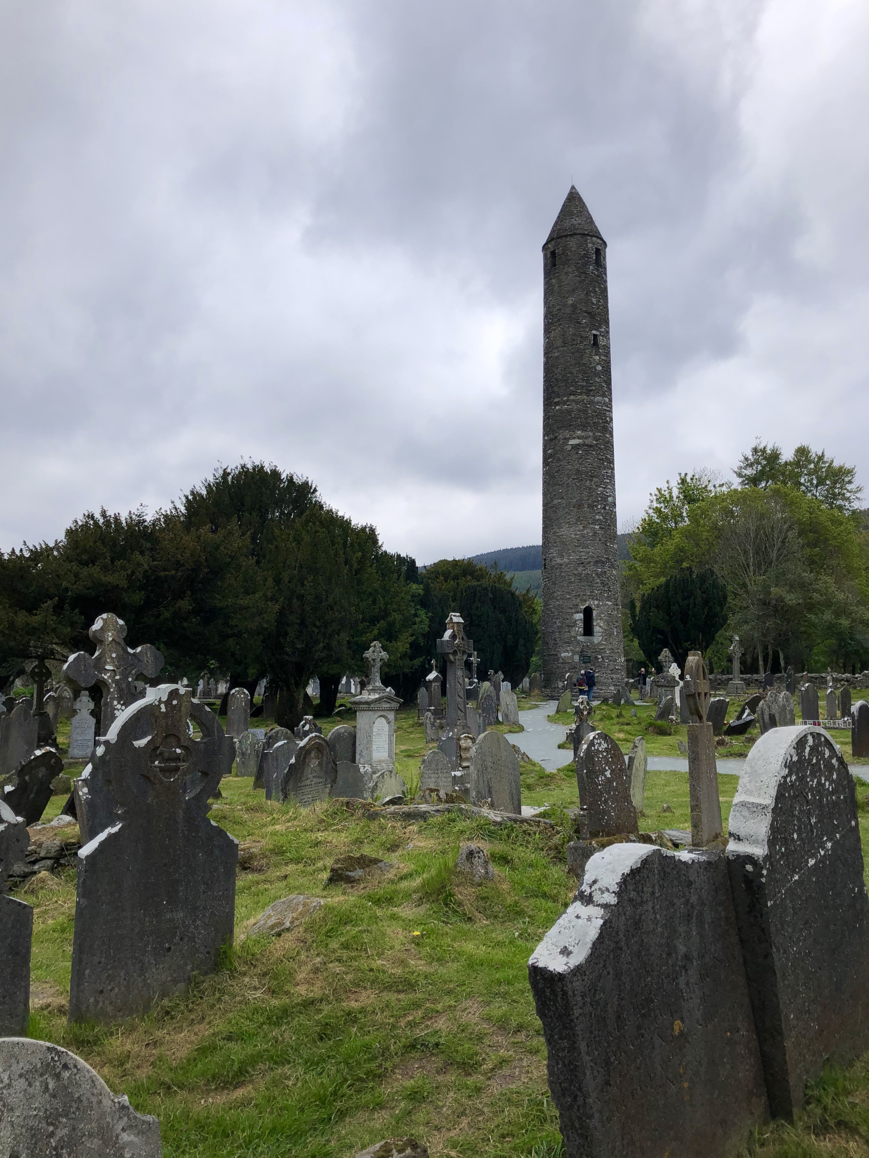We headed toward Glendalough Monastic site around noon.  Taylor had been talking about food for at least an hour so we stopped by Wicklow Heathers for a bite to eat.  The three young-in’s took the opportunity to also try out an Irish whiskey sampler.  I was warmed by my first cup of tea.  Everything there was delicious.  By the time we got to Glendalough, the sun was heading back into hiding and the place was teaming with people.