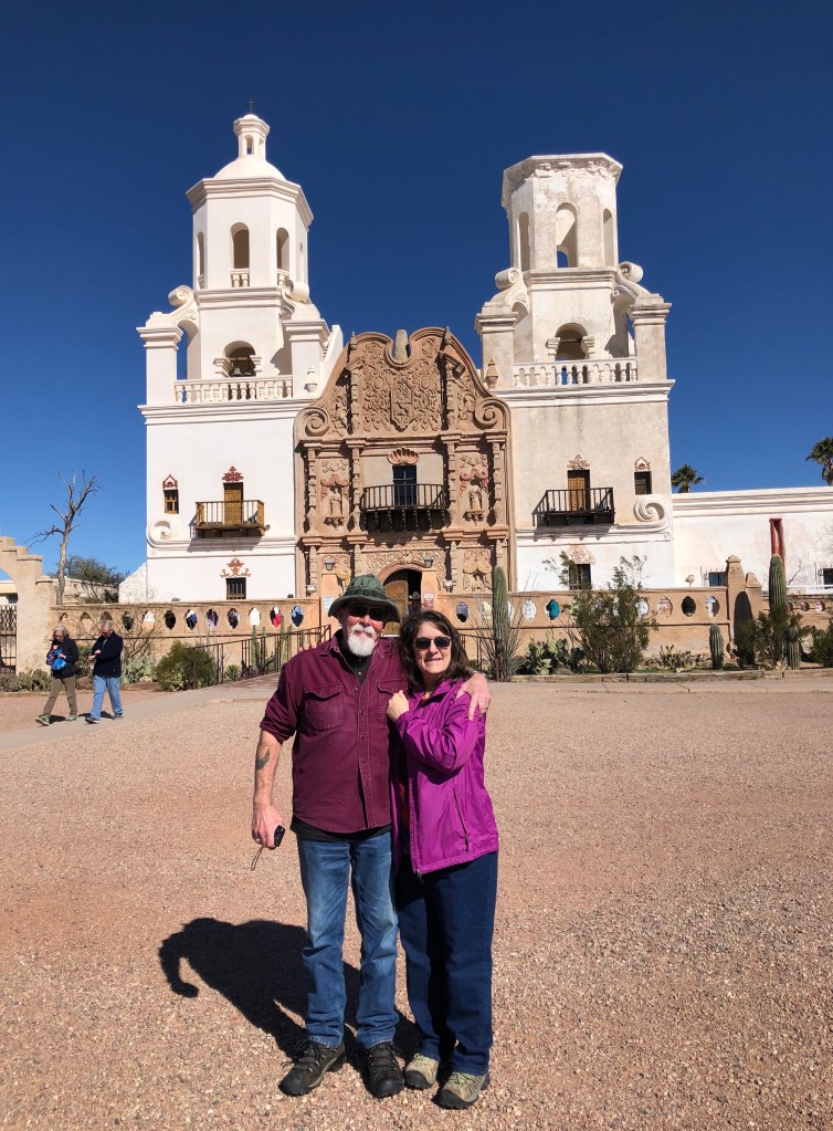 Mission San Xavier del Bac is located 10 miles south of Tucson on the Tohono O’odham Nation San Xavier Indian Reservation. The name translated means, “White Dove of the Desert”. The sky was without clouds as we made our way into the entrance. There was a free tour starting within a few minutes so we decided to take it. The volunteer guide provided a lot of information and history that we would surely have missed otherwise.
