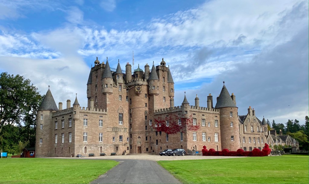 We arrived at Glamis (Glahmz) Castle in time for our 10:30 a.m. tour that I had booked in advance. The self-tour was downloaded onto our phones and off we went to explore. Sally had been through the castle before and knew some of the ghost stories associated with different rooms therein.