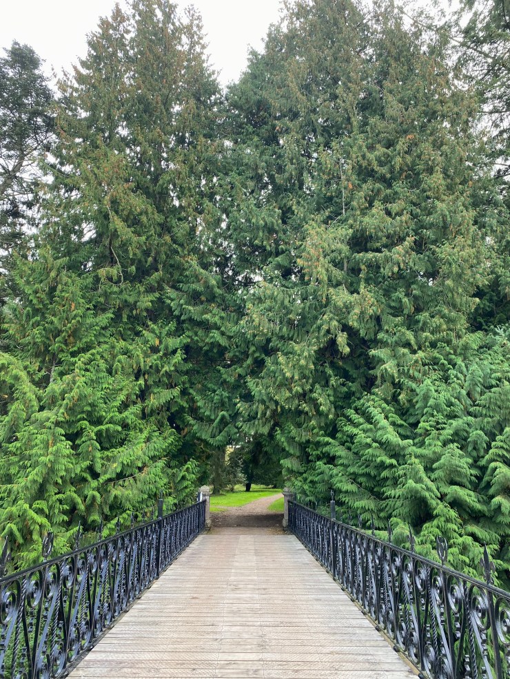 After our castle tour we explored the grounds and gardens. A forrest of immense Douglas fir trees was dotted with wooden sculptures depicting various scenes from “Macbeth”. Mushrooms and fungi were noted on the soft ground under the trees. One could nearly envision potions and poisons being concocted from the woods and gardens. It was a great place to spend a couple hours exploring. The Italian Garden was really lovely!