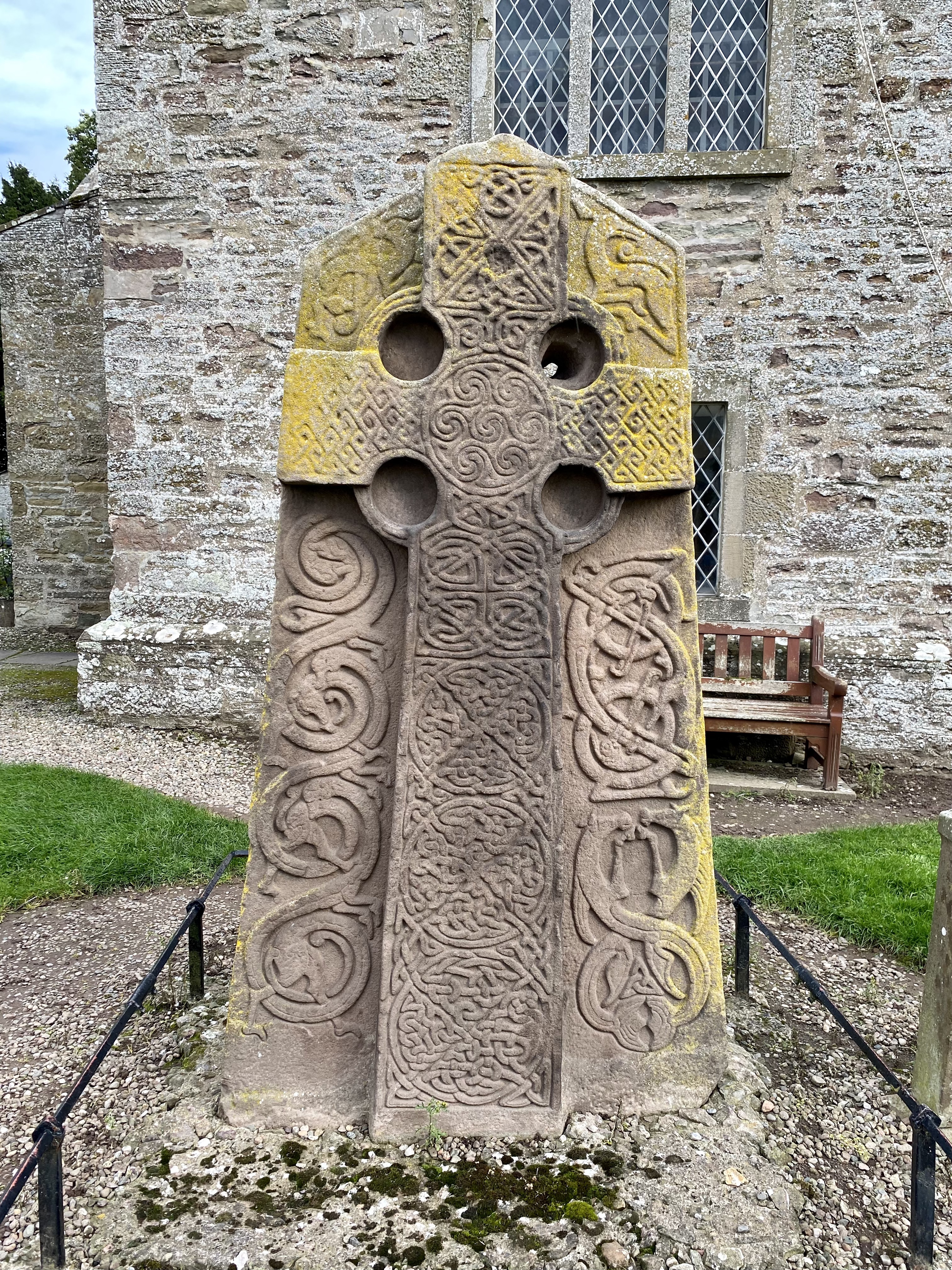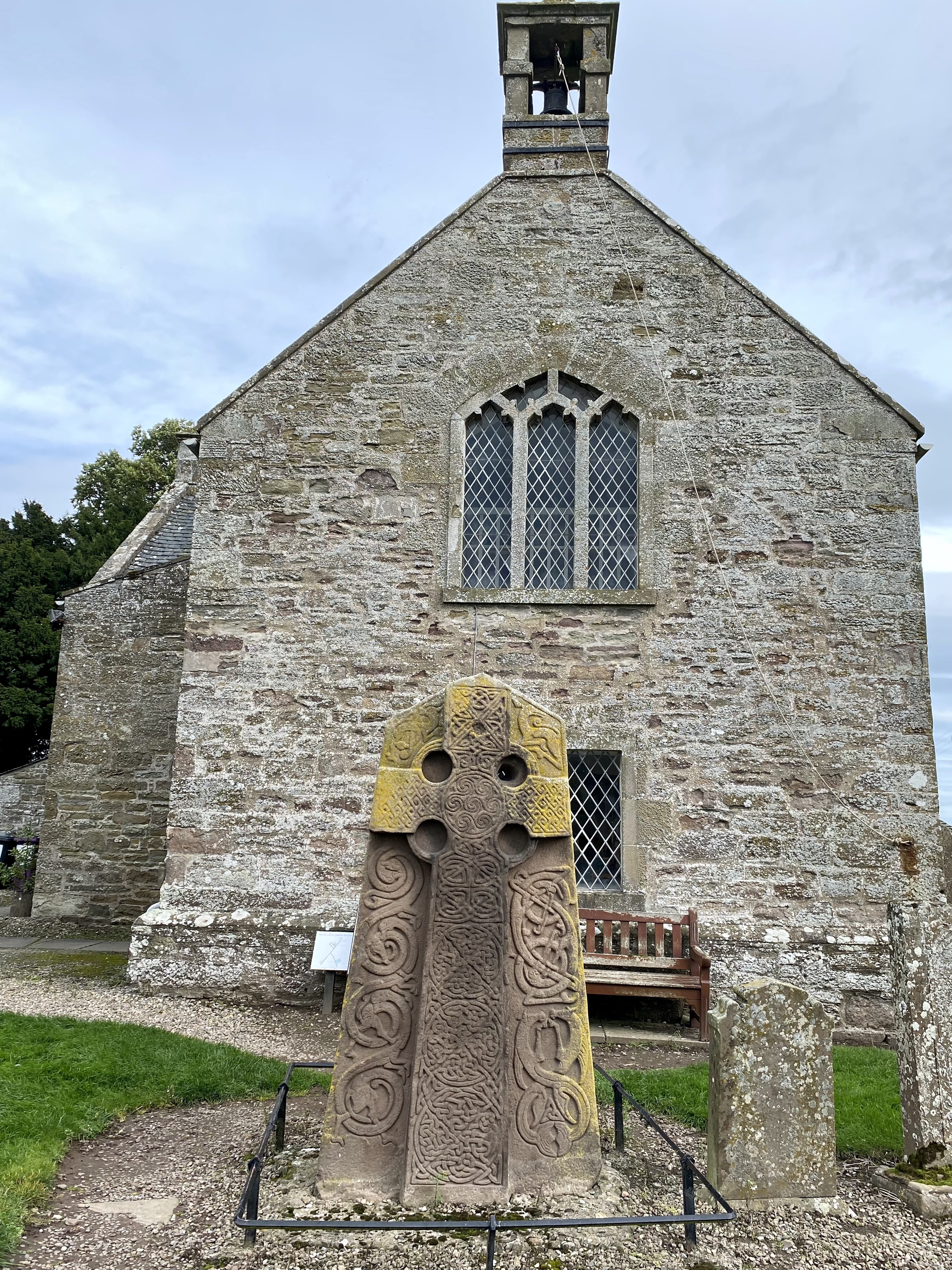 Farther to the northeast were the Aberlemno stones. The first we visited was in another churchyard just off B9134. The stone was in front of the church, but of course it was more of an adventure to use the stone style to gain access.