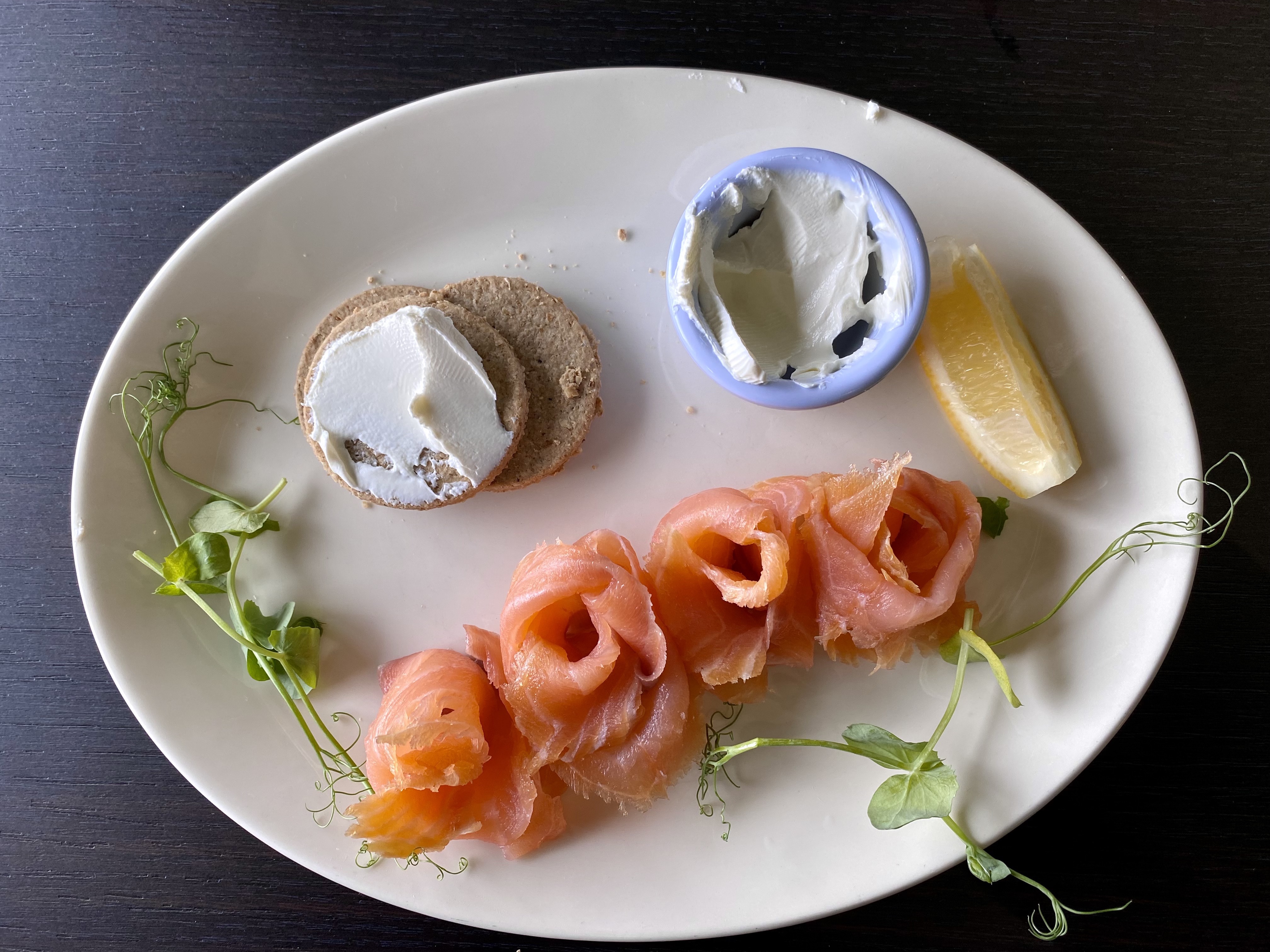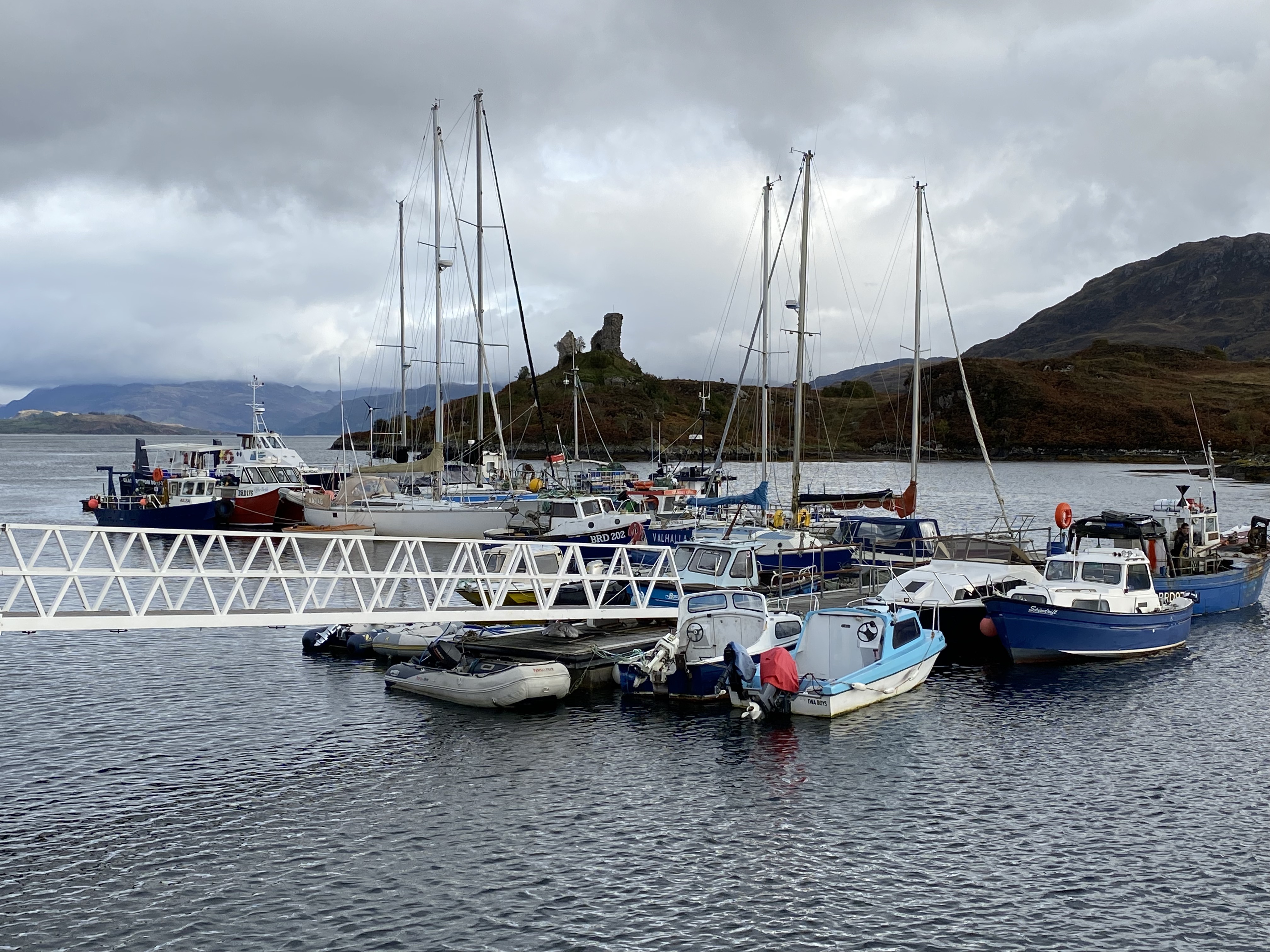 After crossing the bridge to the Isle of Skye, we stopped for a wee bite at Kyleakin at Castle Moil Restaurant.  I enjoyed an amazing plate of smoked salmon, with cream cheese and oat bars; Bill had soup and Sally had a less-than-amazing vegetable cheese wrap.