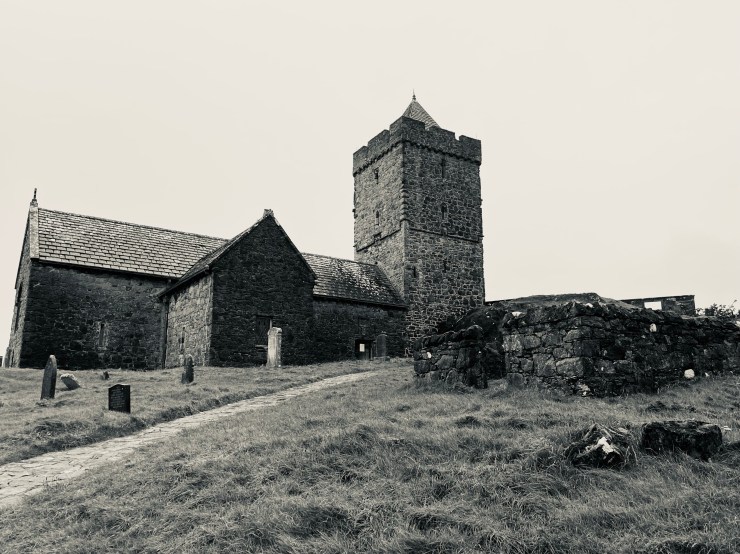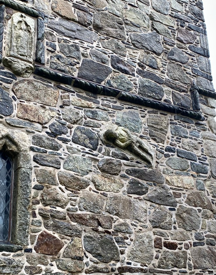 One of the points of interest I was looking forward to seeing this day was St. Clement’s Church in Rodel at the very southern point of Harris. The church was built in the early 1500s and strongly linked with the Clan MacLeod. There is some intricate carving inside, several tombs of MacLeod chieftains, and also some very interesting reliefs on the church tower. One is a “sheela na gig” – a depiction of a naked woman with her legs spread open. Historians speculate that this may have been either a warning against lust, or perhaps a fertility symbol. This type of imagery is found in other place in the Celtic world. There was another interesting carving that many describe as a man holding his genitalia. For those less intrigued by the oddities, there were lovely carvings inside the church as well, some dating again back to the 1500s.