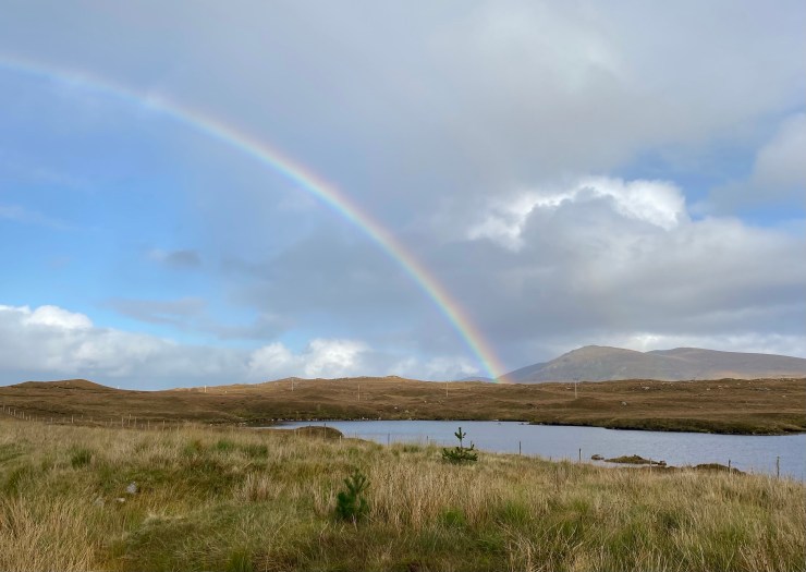 We drove to our lodging in Stornoway marveling at the most highly defined rainbow just ahead in our path. By the time I found a place to stop, it had disappeared. We saw many rainbows during our journeys this day as the sun and rain played Whack-a-Mole with each other. Once settled in, we took off again in search of the Callanish Stones.