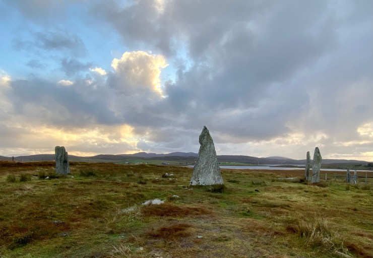 There are actually at least three sets of Callanish stones near dating back 5,000 years – older than Stonehenge. The most famous are those at Callanish I set high on a hilltop. The stone were set in a cross configuration and were the site of ritual activity for a period of approximately 2,000 years. This visit was again a perfect illustration of the rapidly changing light in Scotland. We arrived and they were gloomy and dark. Shortly after the sun crept out from many clouds and illuminated them with lovely golden rays. They are truly a wonder.