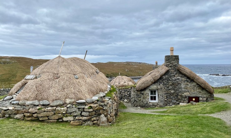 Up the main road was the Gearrannan Blackhouse Village, a cluster of houses whose last inhabitants vacated in 1974. The site was recognized for its historical value in 1976. There are two of these thatched roof structures that are rented out tourist. We had tried to secure one for this trip but at the time, the lodgings were not made available to foreigners. One of the homes had been restored to what it may have looked like back in the day. One side was the lodging area and in the other was a large loom used for weaving tweed. Even though a tourbus had offloaded there it nearly seemed as though we had the place to ourselves. What a beautiful location the inhabitants left behind.