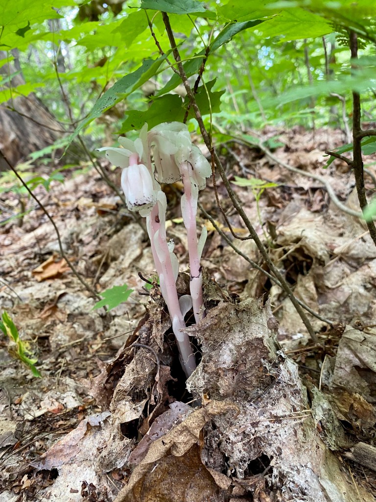 It was an easy hike from the lighthouse to the Hurricane River, taking us about ½ hour to go 1.5 miles. Some young ladies were gracious enough to take our picture on the bridge. I took pause on this stretch to take some photos of ghost pipe flowers along the trail. There were plenty of ups and downs as well, including two road crossings before we got to Benchmark Campground. We paused at Benchmark to find the thunderbox and have a bite of lunch. I had been sucking on Bolt energy chews by Pro Bar in the morning to add a little fruity energy to my hike. They lasted a long time and one pack was enough for two mornings. Same with the Pro Bars I’d packed for my lunch. One bar was two servings. Initially I had doubts that I would be consuming enough calories to keep my energy up; however, I also didn’t want to burden myself carrying a lot of food. My intake was sufficient.