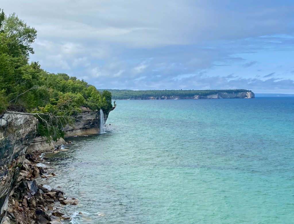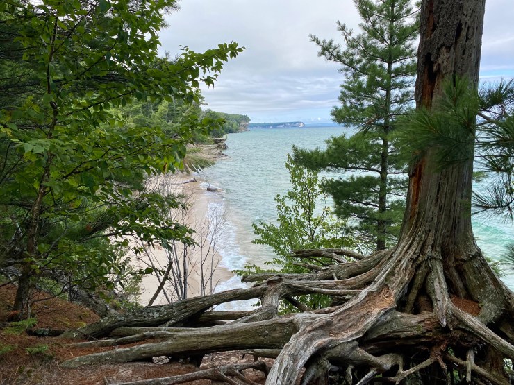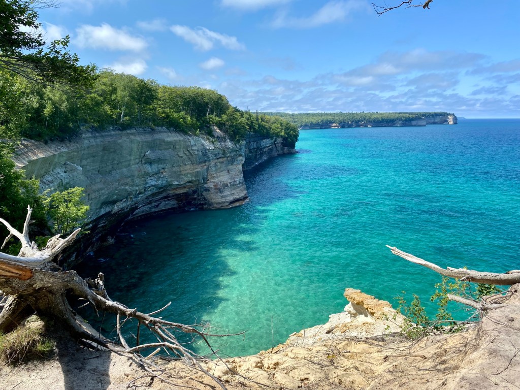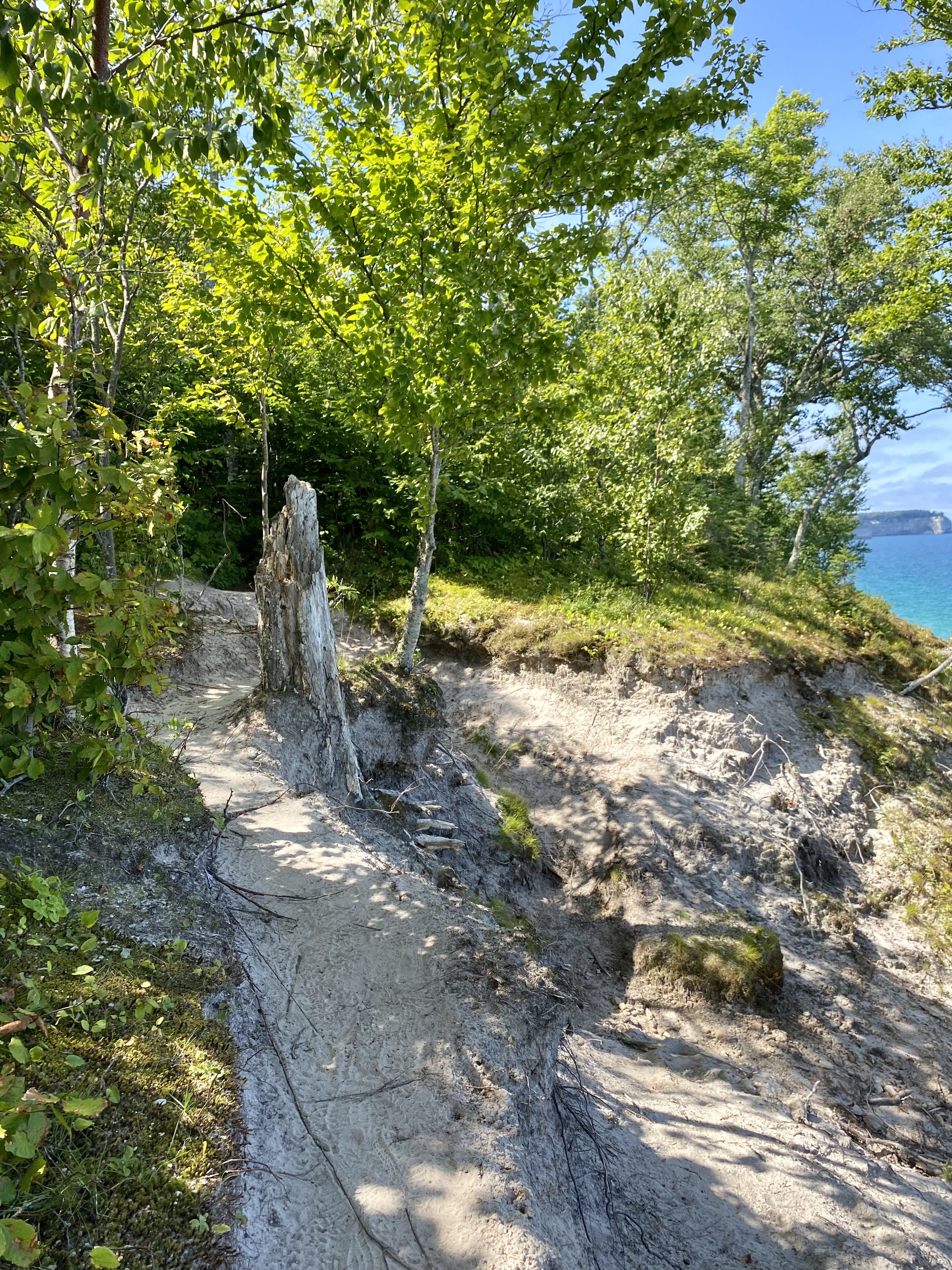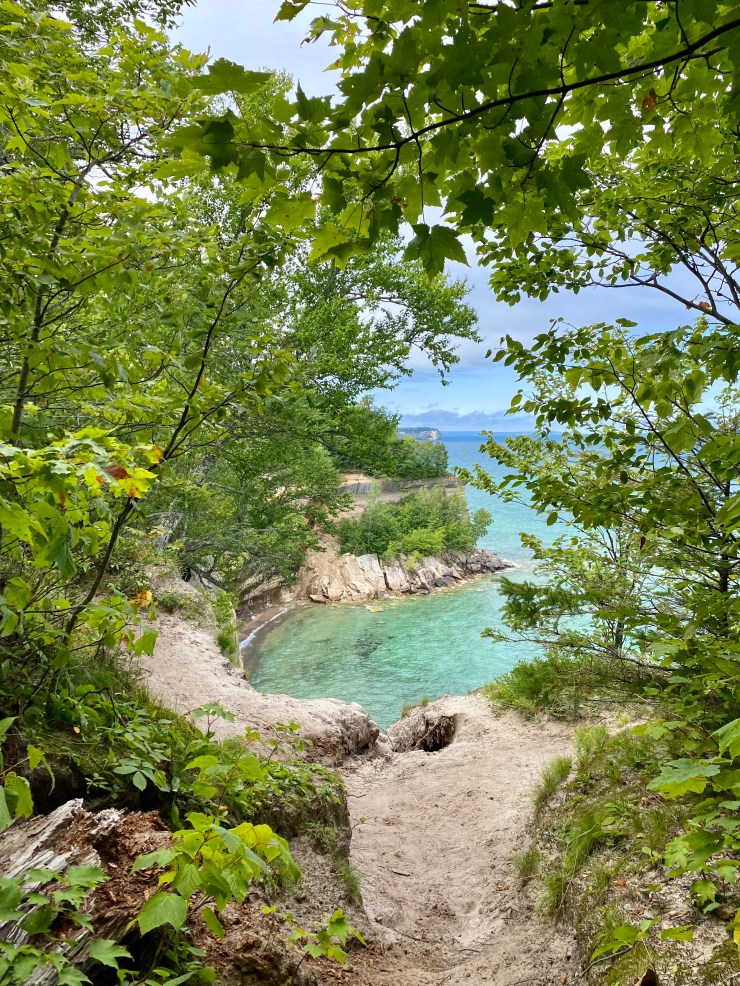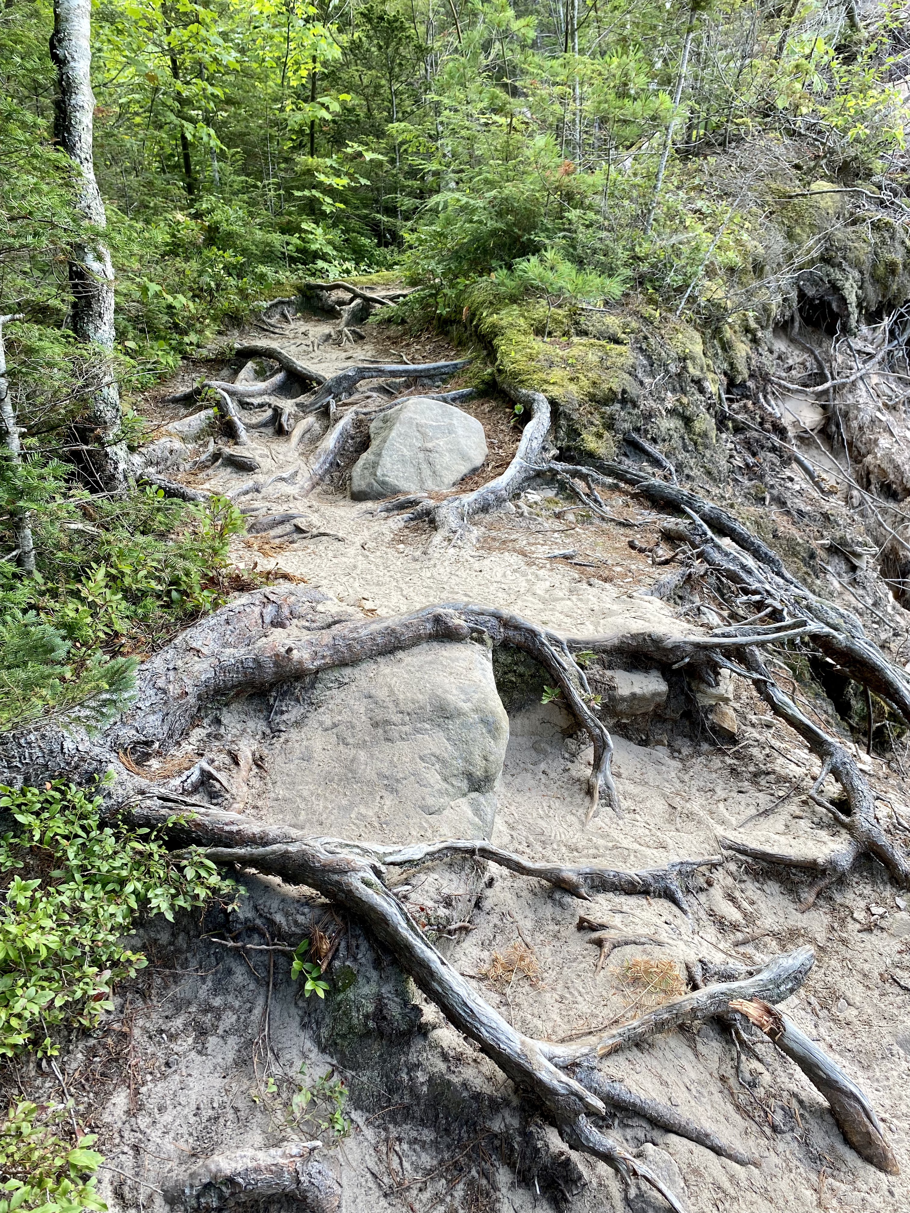 Perhaps due to the proximity of this trail to the more easily accessed Chapel Beach, or perhaps because it was absolutely stunning, we encountered more hikers, and saw more tour boats and kayak-tour traffic on the water. This was truly one of my favorite mornings on the trail. The photo opportunities were plentiful, and I was so thankful I’d packed a charging unit for my phone. It was worth the weight. In fact, there was one group of kayakers all facing their guide as a bald eagle glided over our heads behind them! That would have been a spectacular sight, I’m sure.