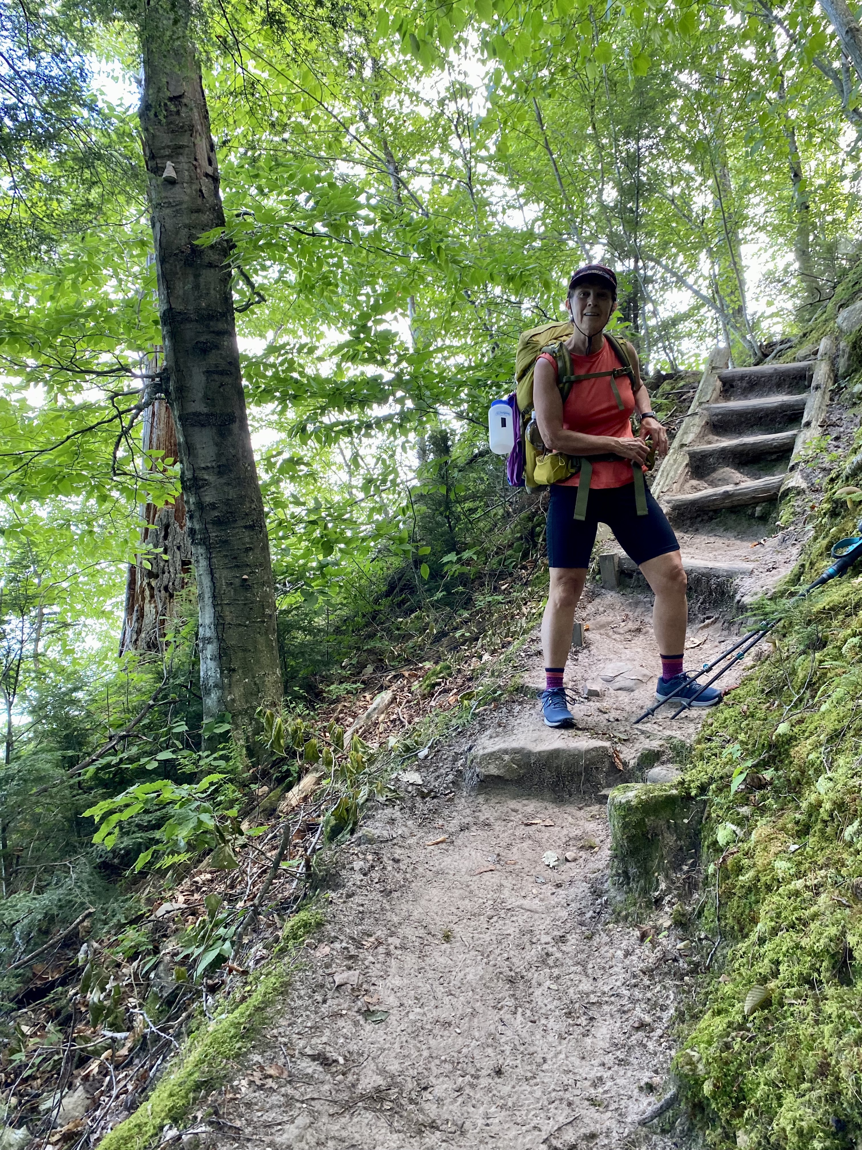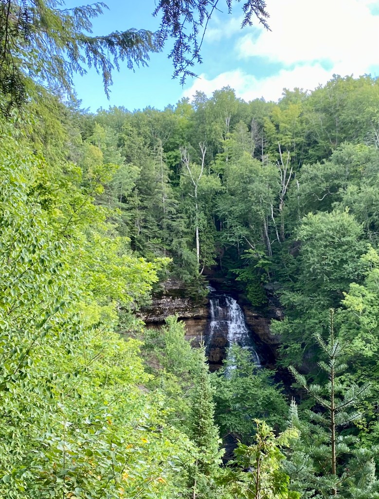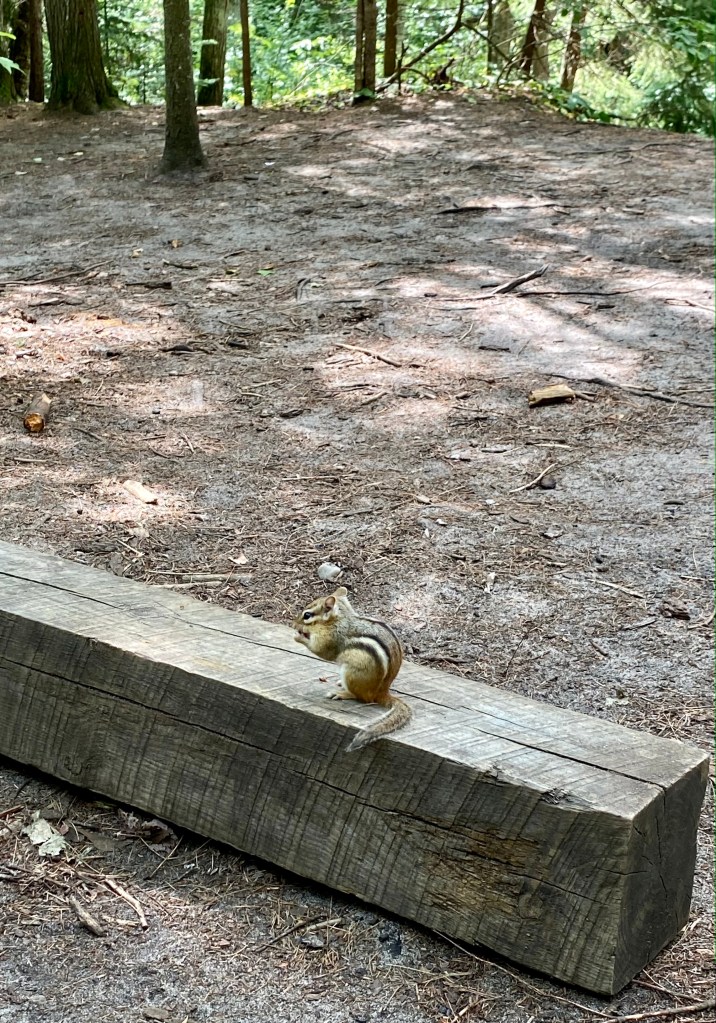 Chapel Beach was lovely. I think we had the best campsite there #3. It was right at the bend in the river and afforded several places where we could pitch our tents. The pit toilets were a bit of a walk away; however. Since we had arrived so early from this short 4.3 mile hike, one of us thought it would be grand to do the loop around Chapel Lake. That had been our original plan. According to Penny, our brother had completed this hike and had reported it to be excellent. (She determined later that it was a different hike!) My knee was debating whether this was a good idea, but we set off to add another 6.1 miles to our day. Had I been completely “hiking my hike” I would not have added this distance. I wasn’t sure how many more miles my knee had left. On the other hand, I also suffer from FOMO (fear of missing out), so off we went! We both found this to be a rather boring trail. We did see Chapel Falls and could at least boast to have conquered nearly 10.5 miles of trail this day.