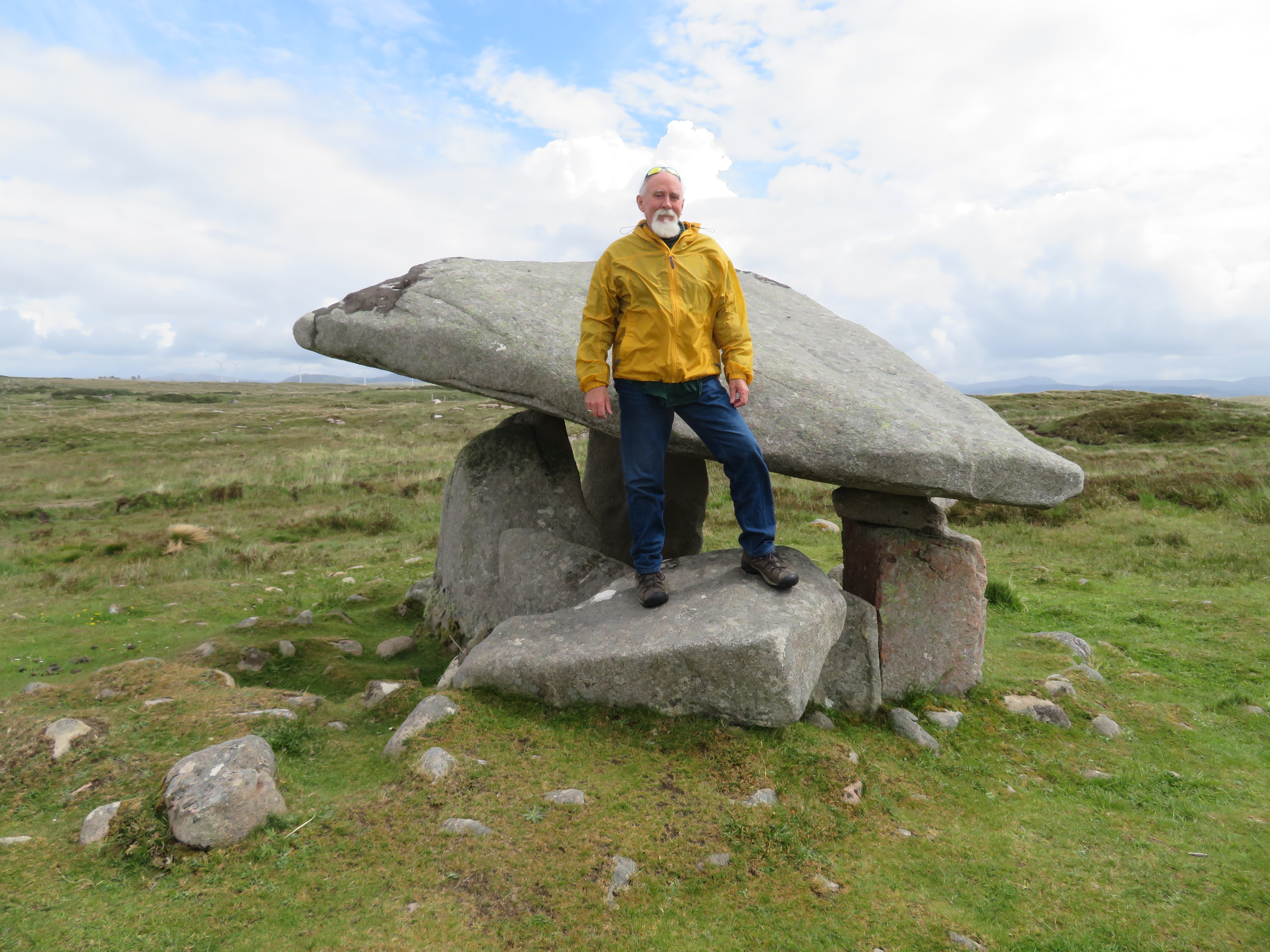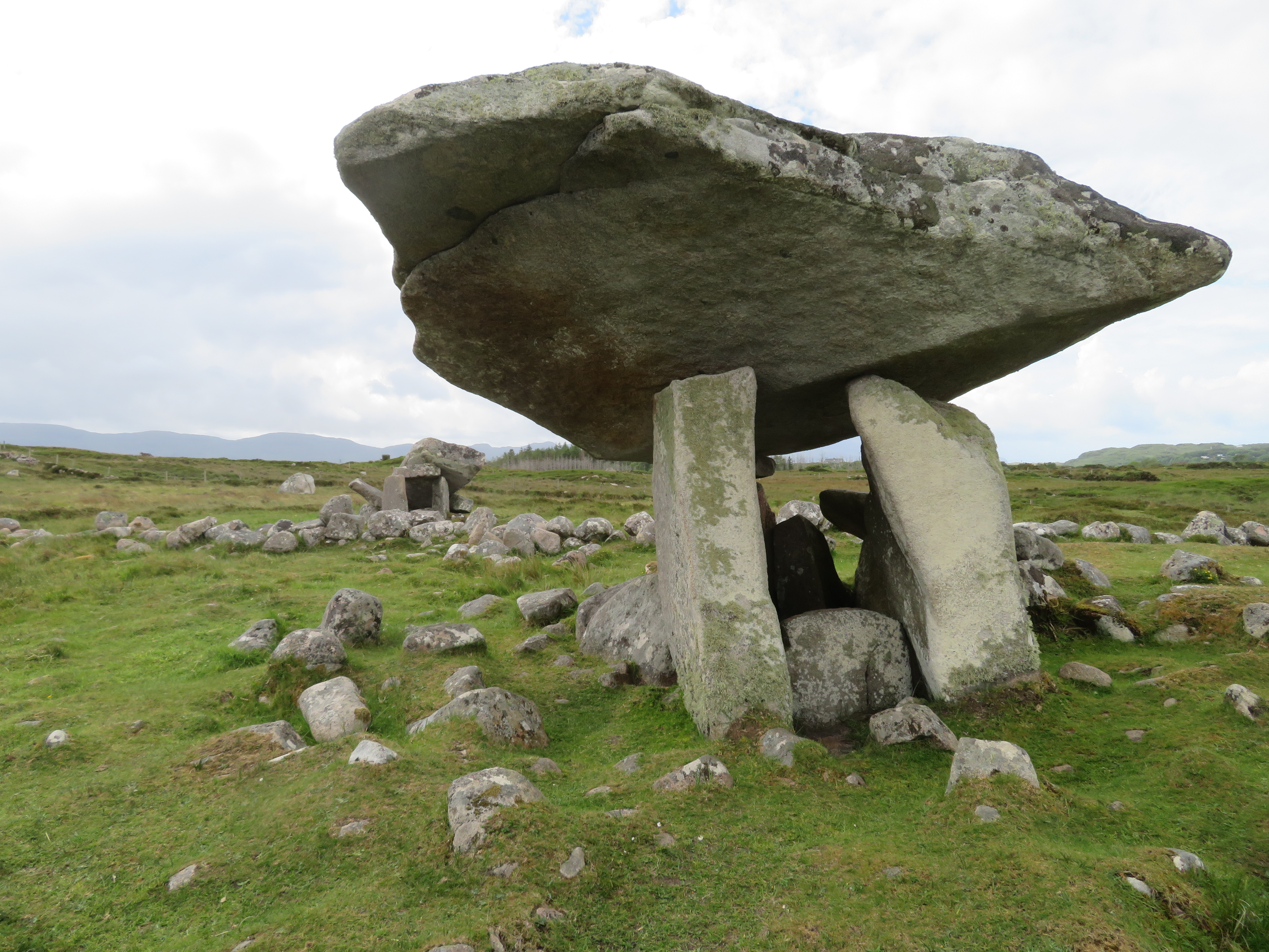 The Kilclooney Dolmen dates to between 4,000 – 3,000 B.C. and is just beautiful. You can walk all around it without obstruction. Nearby is a collapsed Dolmen. It is amazing to me how this large capstone balances so delicately on the portal stones. There is a backstone on which the cap stone rests with a smaller chocking stone above it. It is speculated that this chocking stone was put in place to adjust the angel of the capstone. We felt like real adventurers making our way to that site.