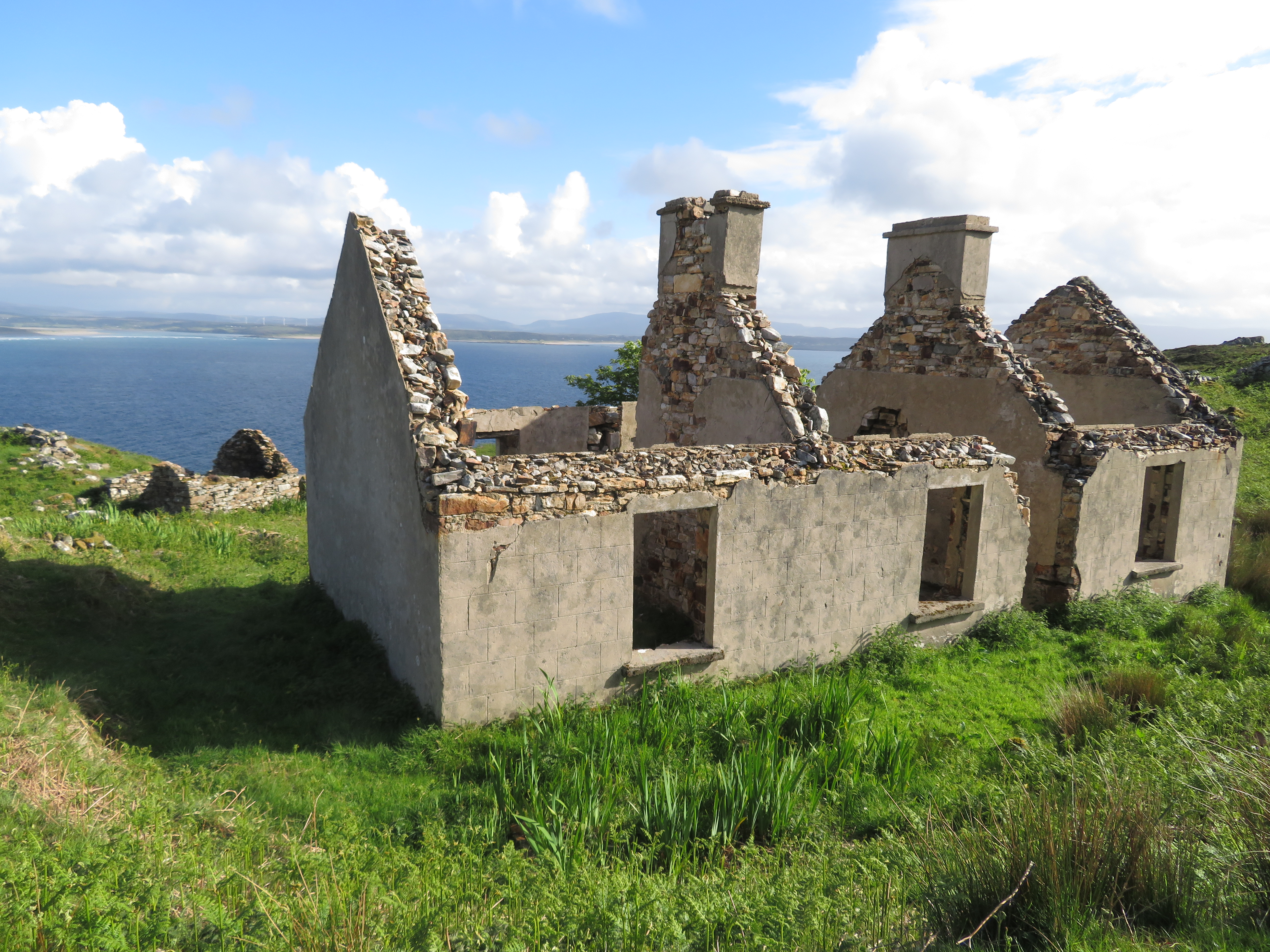 That should have been enough for one day but we were so close to Crohy Head. Before we knew it we were headed down a two track up another narrow, twisting road. Although we were driving a station wagon, I felt like I was driving an ATV! We climbed and climbed, passing abandoned homesteads, loads of sheep and beautiful vistas. It’s recommended to visit Crohy Head at sunset. I don’t think it’s recommended to take our route at sunset!