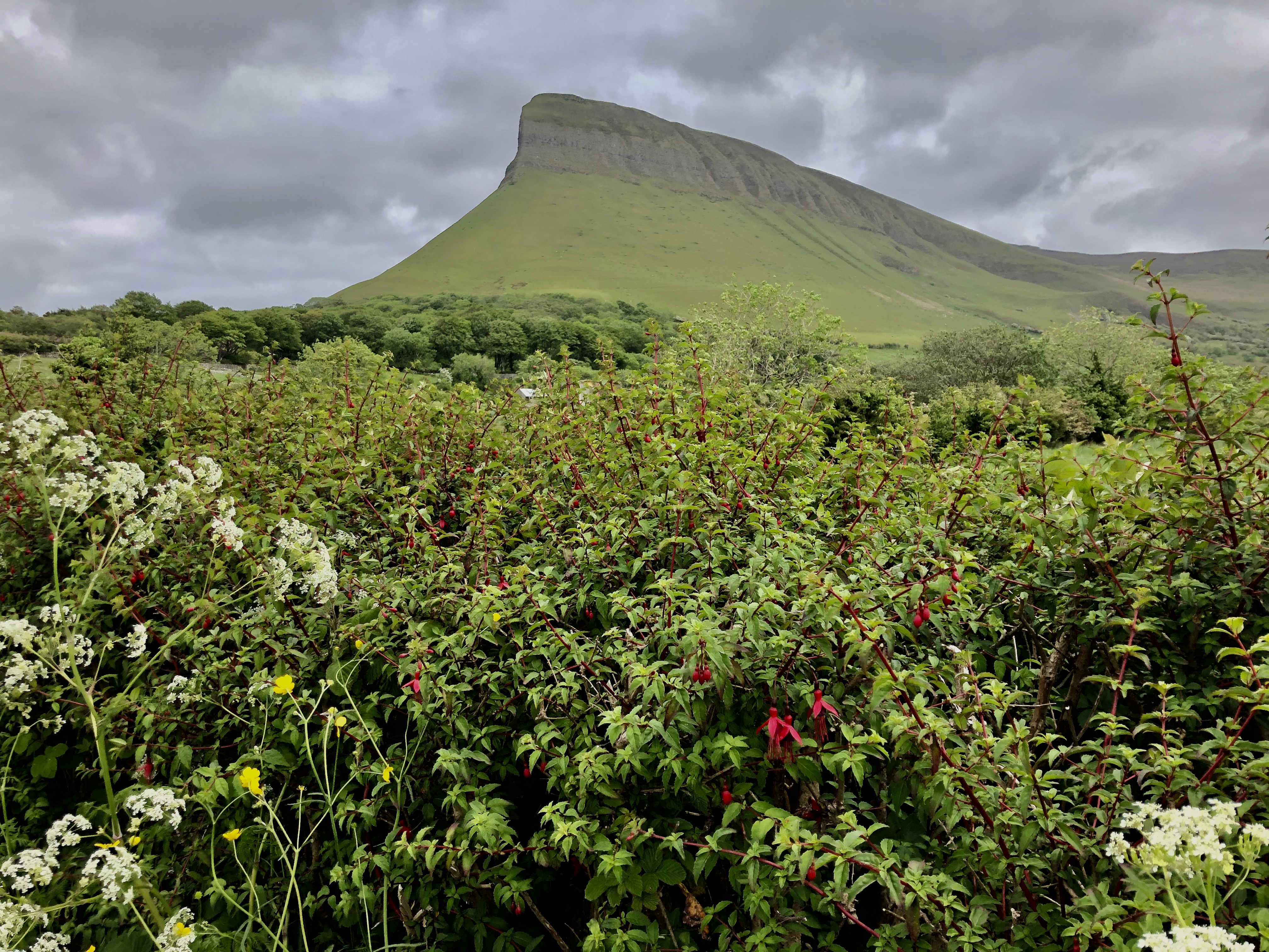 Just past Drumcliff there was a sign pointing the way to a hiking trail. We had no intention of going hiking but I thought we’d at least pop up that road to see what we could see. What we saw was a stunning view of the mountain.