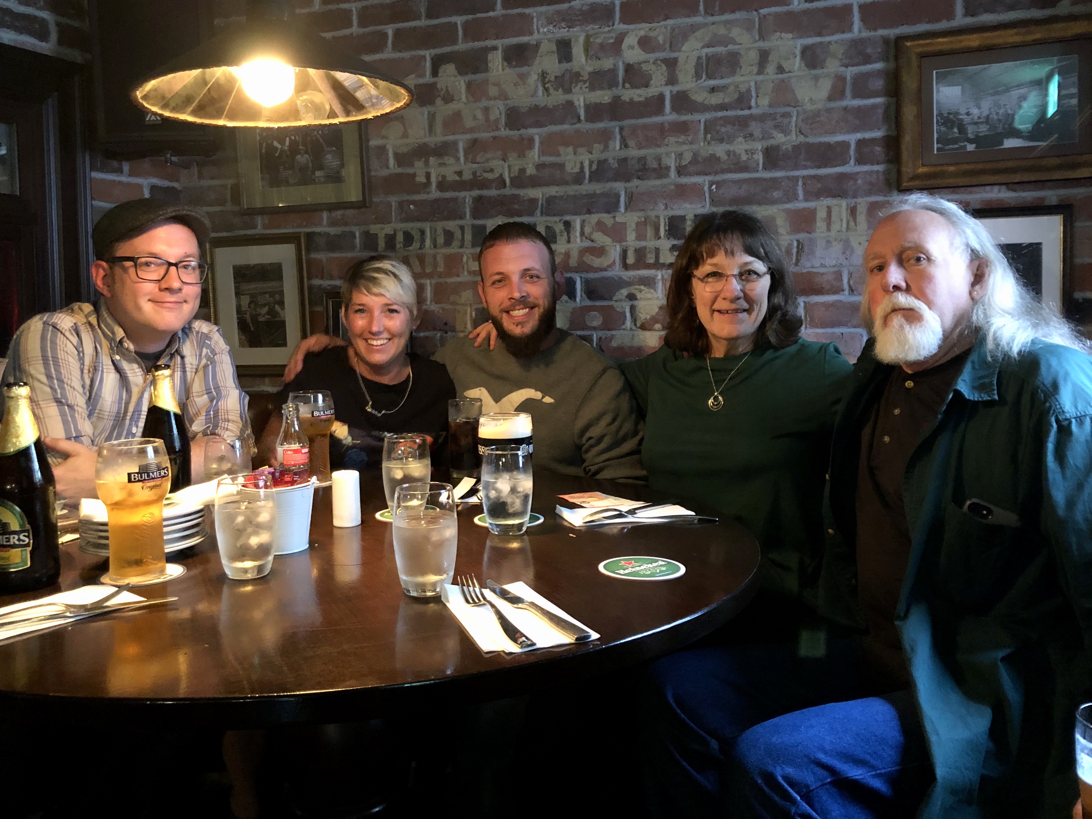 After claiming our respective bedrooms we headed two short blocks to the town center for some dinner. I had chosen Brogan’s as our dining location. We entered through the front door and were escorted to a large round table in the far back of the packed pub. We ate well! Taylor tried the usual seafood chowder (he has become the resident expert), and Keenan ordered the “Brogan’s sharing board for two” that he ate himself. The waitress said, “When it’s for one it’s called ‘the greedy boy’.” Seana had mushroom tortellini, Bill a robust hamburger, and I had the potato leek soup. With two rounds of drinks we had one of the best, most economical meals we had for the whole trip.